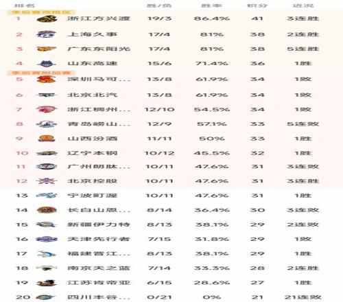 CBA最新積分榜