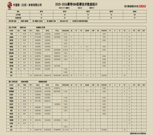 2025-2026賽季CBA常規(guī)賽第二十二輪,遼寧本鋼對陣天津先行者的比賽于31日晚在遼寧體育館進行,遼寧本鋼隊最終105:91擊敗天津先行者。