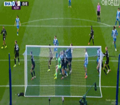 第41分鐘,布萊頓角球機會,被判侵犯門將