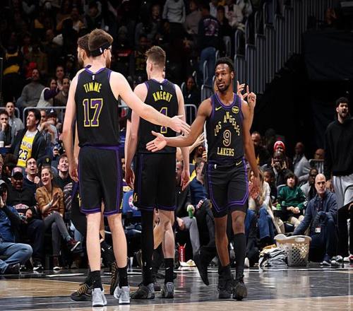 本場比賽中,湖人的雙向合同替補內線新星德魯-蒂米(Drew Timme)的表現還是頗具亮點的。蒂米全場出場17分05秒,投籃2中1,三分線外1中0,得到了4分1籃板3助攻的數據,還有1次失誤和2次犯規,正負值也是達到了+17。蒂米在進攻端沒有辦法得到更多的出手機會,他也沒有辦法得到更多的分數。不過他還是展現出了一定的得分能力,在對手內線能夠制造一定的威脅,而且他在傳球和策應方面的能力相當不錯,他也是一名球商很高的球員。蒂米雖然不被認為是一名可靠的防守者,但是他在防守端也是非常賣力的,并且也沒有出現什么太大的問題。總體來看,蒂米在本場比賽中的表現算得上是比較全面的。只是受制于球權和戰術地位,他也確實是沒有能力打出更好的表現。