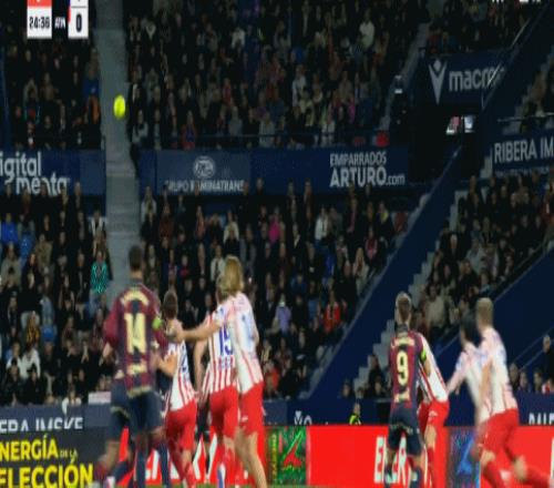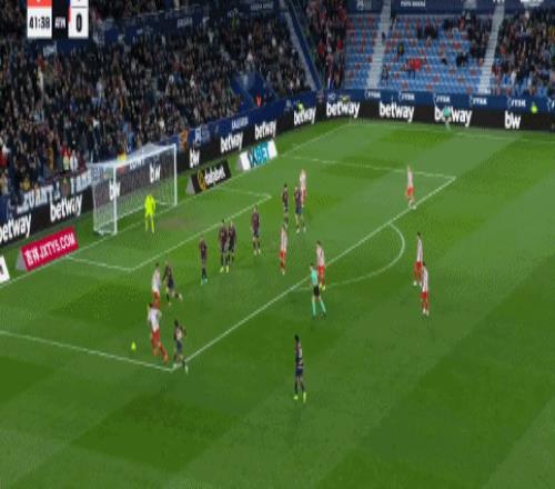 第68分鐘,巴勃羅-馬丁內斯超遠距離打門嘗試,皮球高出球門