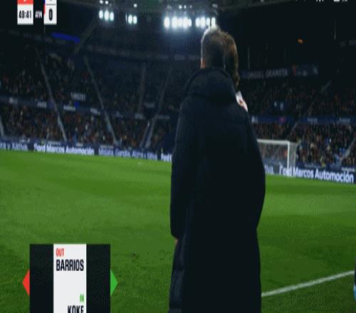 第49分鐘,馬競換人調整,科克上場替換巴勃羅-巴里奧斯