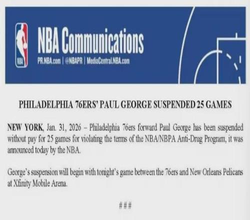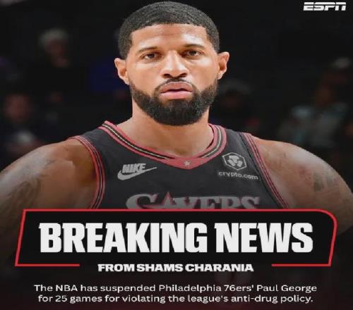 爆料王Shams:喬治因違反聯盟禁藥政策將被禁賽25場比賽......該消息已經得到NBA官方的確認。