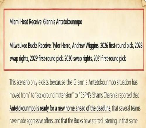 截至目前,熱火以26勝23負,排名東部第8,處在一個不上不下的尷尬位置。過去幾年,他們一直是交易市場上的觀望者,從利拉德、小波特到杜蘭特,他們都表現得非常謹慎,而當時的報道稱,他們觀望的主要原因是,需要為字母哥申請交易做足準備。
