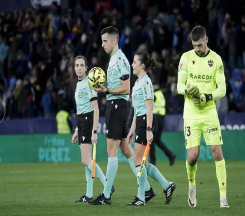 萊萬特vs馬競的比賽中兩名邊裁都是女性,為西甲歷史首次 懂球帝 2026-02-01 16:12:13 在今天凌晨進行的西甲第22輪比賽中,萊萬特主場0-0戰平馬競,其中兩名助理裁判分別是朱迪特-羅馬諾和埃利安娜-費爾南德斯。本場比賽,來自阿斯圖里亞斯的朱迪特-羅馬諾和埃利安娜-費爾南德斯擔任助理裁判,這是西甲聯賽中首次出現兩名助理裁判都由女性擔任。本場比賽,瑟洛特在上半場因頭部受傷被阿爾瓦雷斯換下,萊萬特方面有10次射門2次射正,馬競有10次射門4次射正,但兩隊都沒能進球,全場戰罷,最終馬競在客場0-0戰平萊萬特。西甲免費觀看_馬競免費觀看_邊裁免費觀看_西甲高清在線_馬競高清在線_邊裁高清在線 西甲 馬競 邊裁 萊萬特 馬德里競技 阿爾瓦雷斯 上一篇: 西甲爭冠變天!巴薩4分壓皇馬,馬競悶平保級隊徹底掉隊 下一篇: 年薪西甲第一,投入1.7億歐落后巴薩10分,馬競會解雇西蒙尼嗎