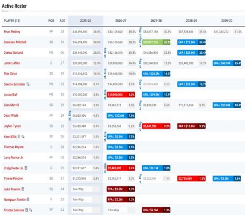 所以騎士隊本賽季更多的運作都還是為節省開支為主,加蘭、阿倫、米切爾、莫布利四位拿著億元合同的球員占據了球隊大部分的薪金空間,這四人可能只有米切爾、莫布利要安全一點。