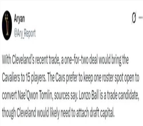 根據美記Aryan的說法,因為交易達成后騎士就是15人大名單,騎士傾向于將內匡的雙向合同轉正所以球隊還需要騰出一個空位,朗佐鮑爾就是交易對象之一,不過騎士要送走他可能要送出選秀權。